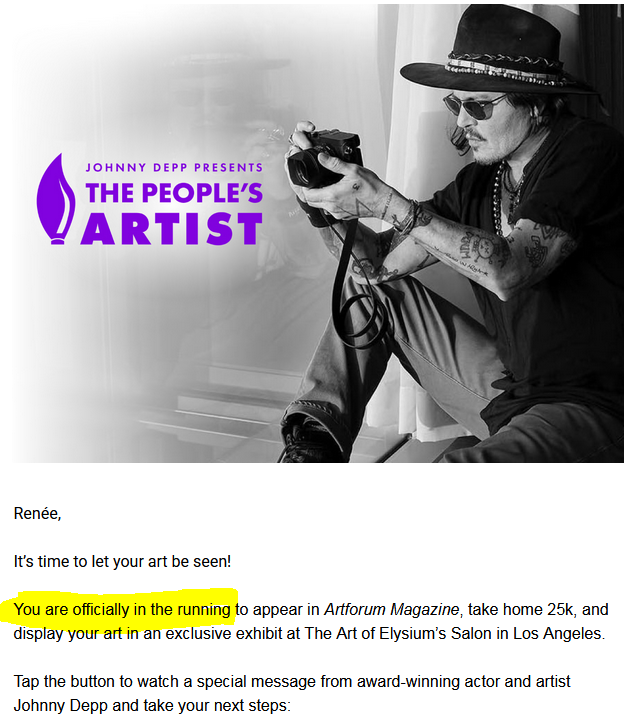 After applying to the Johnny Depp People’s Artist contest, I opened my inbox to see two words I wasn’t expecting: “YOU’RE IN.”